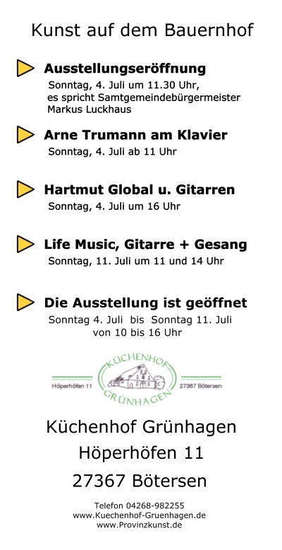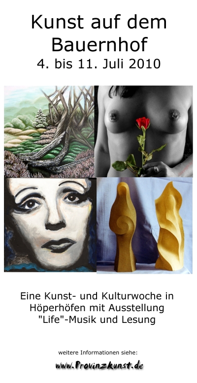 Kunst auf dem Bauernhof in Höperhöfen 4. bis 11. Juli 2010 Eine Kunst- und Kulturwoche in Höperhöfen mit Ausstellung Live-Musik und Lesung | ||||||||||||||||||||||||||||||||||||||||||||||||||||||||||||||||||||||||||||||||||||||||||||||||||||||