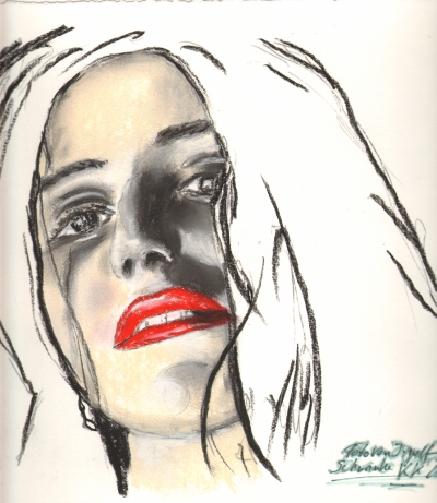 Modell v. Ingolf mit rotem Mund" 2010 Klaus Klencke Kreide auf Papier |