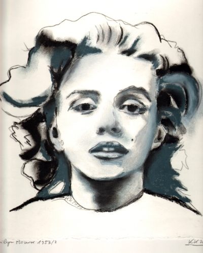 Marilyn Monroe 1953 in Blau" 2010 Klaus Klencke Kreide auf Papier | ||||||||||||||||||||||||||||||||||||||||||||||||||||||||||||||||||||||||||||||||||||||||||||||||||||