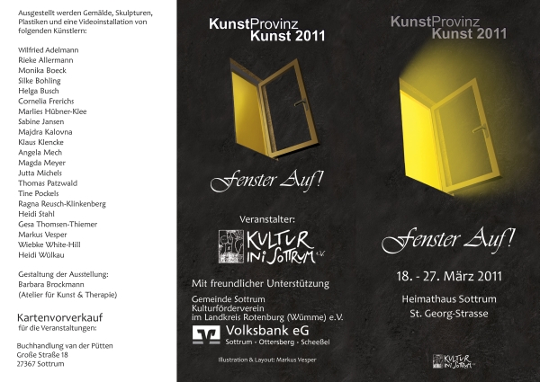 Jede Menge Kabarett, Film und Literatur Sottrum (ho). Die Planungen für die sottrumer "Kunstprovinz" vom 18. bis 27. März im Heimathaus laufen auf Hochtouren. 17 Künstler haben sich dafür bisher fest angemeldet."Erfahrungsgemäß kommen noch einige dazu", weiß Helga Busch von der Kulturinitiative, die mit Wiebke White-Hill für die Gesamtorganisation verantwortlich ist. Die Eröffnung der Ausstellung unter dem Motto "Fenster auf!" ist für Freitag, 18. März, um 20 Uhr vorgesehen. "Dieses Mal haben wir drei Künstler mit Objekten und Skulpturen aus Stein und Holz", freut sich Helga Busch. Die Exponate wird Barbara Brockmann wieder im Heimathaus arrangieren. Freuen dürften sich die Besucher schon jetzt auf die drei Programmpunkte. Dazu gehört Sonntag, 20 März, Voker Diefer, der mit seiner Show "Ein Bauch ist schon mal ein Ansatz" einen Angriff auf die Lachmuskeln startet. Am Mittwoch, 23. März, wird der schwedische Film "Wie im Himmel" im Heimathaus gezeigt. Zum Finale am Sonntag, 27. März, "serviert" das Trio Limousin Literatur und Musik. | |